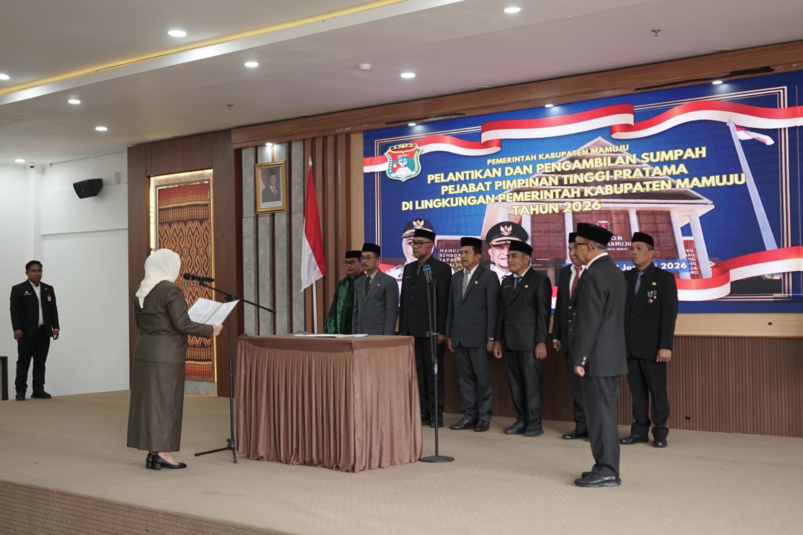 Bupati Mamuju, Hj. Siti Sutinah Suhardi melakukan Pelantikan dan Pengambilan Sumpah Jabatan sebanyak enam (6) orang Pejabat Tinggi Pratama, Pelantikan tersebut dilaksanakan pada Jumat tanggal 30 Januari 2026 di ruang Pola Kantor Bupati Mamuju.